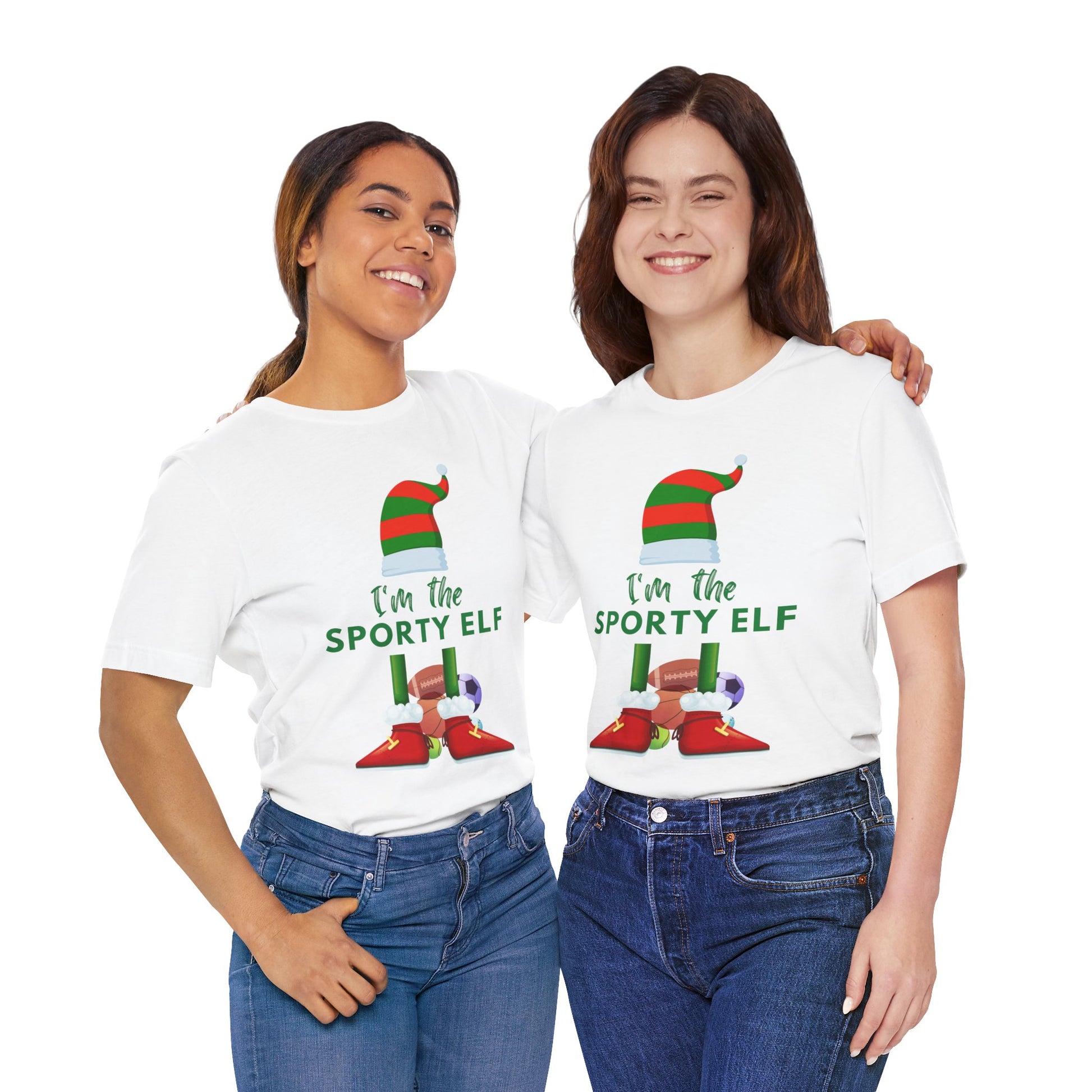 Sporty Elf Funny Holiday T-Shirt — "I'm the Sporty Elf" Christmas Tee